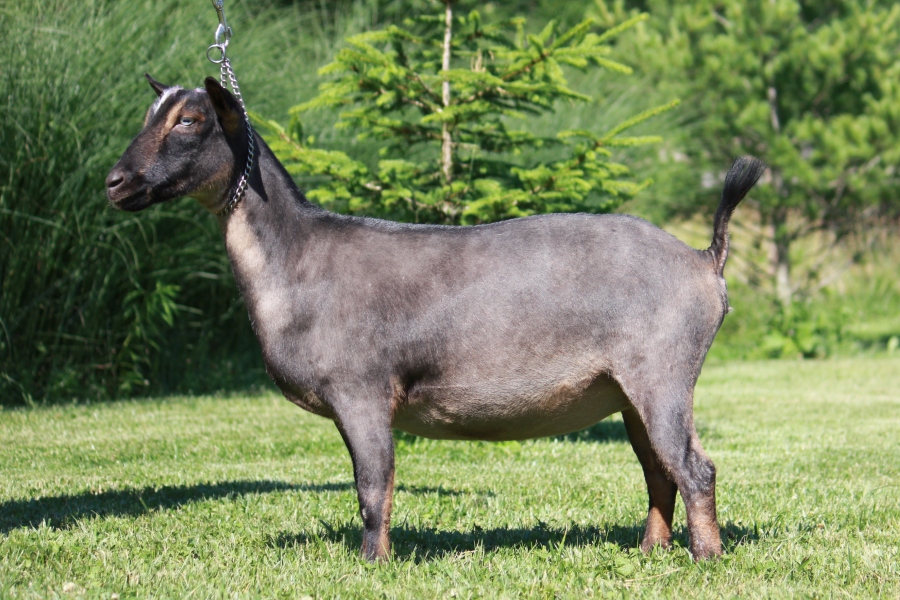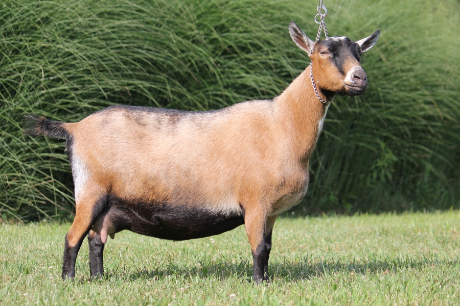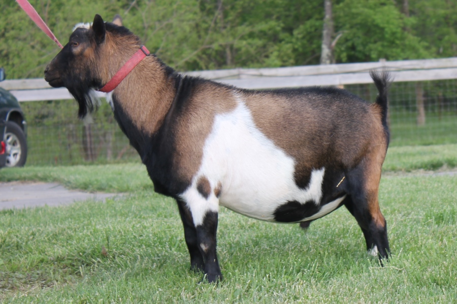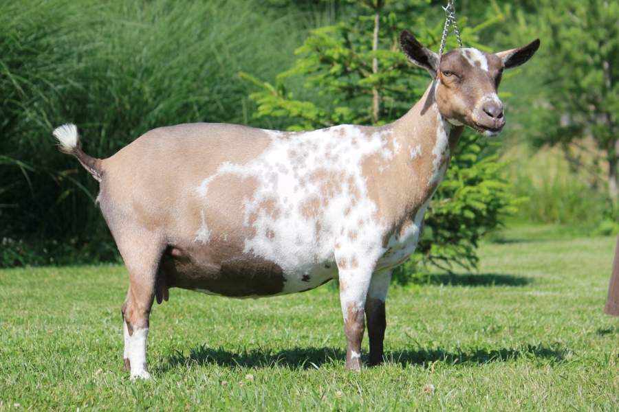 Smores' three daughters that we kept earned their stars in the one day milking test. This made Smores a +B with ADGA and a +S with AGS. Smore's half sister became grand champion in 2016 with the ADGA national shows. We have six of his daughters: Betzy, Flower, Spice, Teriyaki, Heidi and Schwanli. Smores is sold and left the farm in 2017.